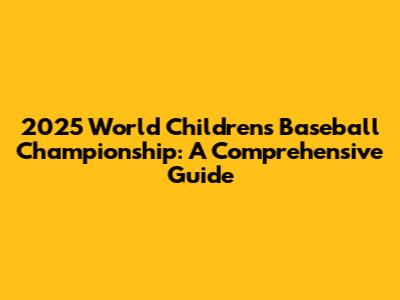 2025 World Children's Baseball Championship: Everything You Need To Know