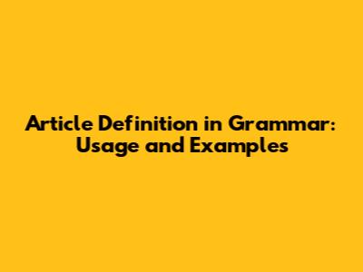 Article Definition In Grammar: Usage And Examples