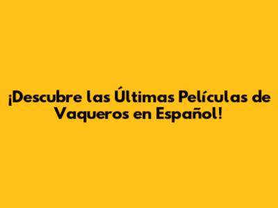¡Descubre Las Últimas Películas De Vaqueros En Español!