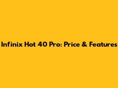 Infinix Hot 40 Pro: Price & Features