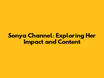 Sonya Channel: Exploring Her Impact And Content