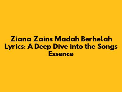 Hey music lovers! Today, we're diving deep into the world of Malaysian pop with a focus on one of Ziana Zain's most iconic songs: "Madah Berhelah." This track isn't just a song; it's a cultural touchstone, a piece of Malaysian history wrapped in a melody that's both haunting and beautiful. We'll be exploring the lyrics of 'Madah Berhelah', breaking down their meaning, and appreciating the musical genius that makes this song so special. So, grab your headphones, and let's get started!